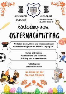 - Kommt vorbei: Osternachmittag 🐣 beim SV Brehmer Leipzig 💙❤️⚽️!Am Ostersamstag, den 04.04.2026, laden wir euch herzlich zu unserem Osternachmittag auf dem Sportplatz ein!… Kommt vorbei: Osternachmittag 🐣 beim SV Brehmer Leipzig 💙❤️⚽️! weiterlesen